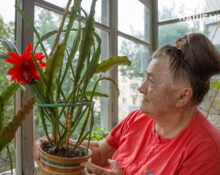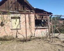 Пташка сидить високо на дереві і боїться людей. Її разом із самцем привезли з прифронтового села на Дніпропетровщині 30 листопада,
