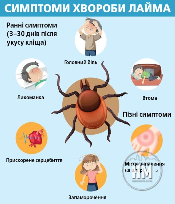 Бореліоз рідко буває смертельним, але може викликати чимало проблем для організму. Його інкубаційний період становить від 1 до 45 днів, у середньому – 7–14. Симптоми можуть відрізнятися у різних людей, але є такі, що зустрічаються найчастіше. Серед них, окрім еритеми, можуть бути лихоманка, головний біль, нудота та блювота, біль у м’язах та суглобах, набряклі лімфатичні вузли. До більш специфічних проявів бореліозу медики відносять порушення сну, труднощі з концентрацією уваги, параліч лицевого нерва, заніміння та поколювання в руках і ногах, менінгіт, ураження клапанів серця. Вакцини проти хвороби Лайма немає, тому нам залишається тільки профілактика.