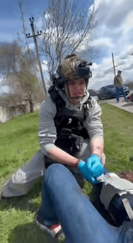 “Надання допомоги” знімається на відео для соцмереж Кучера, який відверто хайпує на темі прильотоів та постраждалих від ворожих ударів.