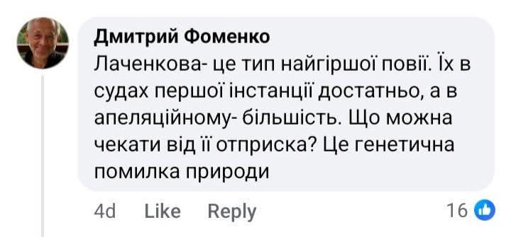 Користувачі соцмереж згадали також, що мати Лачена – екс-суддя апеляційного суду Дніпра. Свого часу вона змусила дніпровський Південмаш віддати 6 млн грн підприємству ВПК росії. Крім того, могла бути причетною до низки інших вкрай суперечливих рішень.