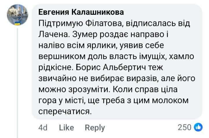 Крім того, міський голова прифронтового міста запросив Лачена, який воліє перебувати у столиці, приїхати до Дніпра на відверту чоловічу розмову і сказати усе прямо у вічі, а чим додатково викликав презирство та осуд людей.