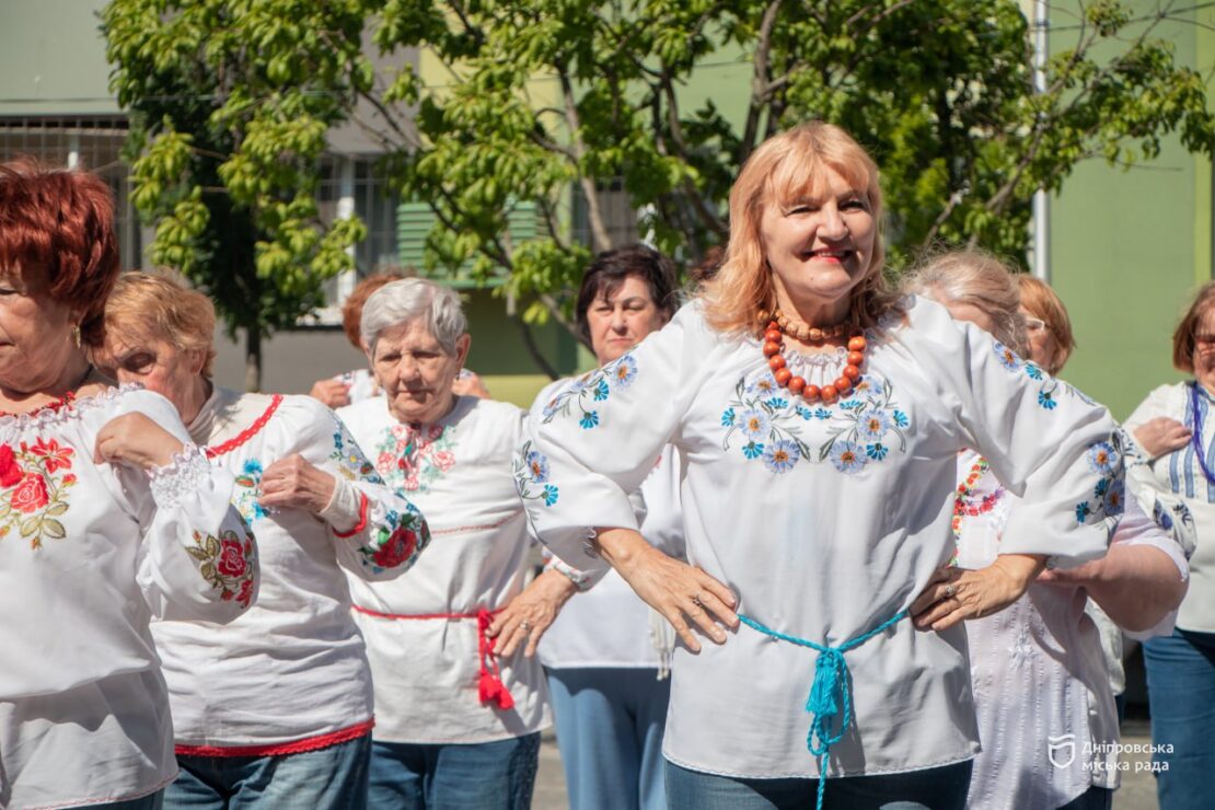 Святкували День вишиванки у сквері ім. Олексія Хільського, що на просп. Слобожанському. Там провели теж танцювальний флешмоб у вишиванках. Усі учасники — підопічні Дніпровського міського територіального центру.