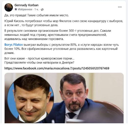 Борис Філатов виграв вибори з результатом 80%, а «слуги народу» взяли трохи більше ніж 10%. Усі сфабриковані кримінальні справи розвалилися як картковий будиночок.