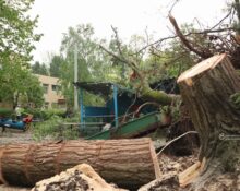 У Дніпрі оперативно ліквідовують наслідки негоди. Кипіла робота по Донецькому шосе, 126. «Тут прибираємо повалену тополю. Задіяли чотири одиниці техніки: