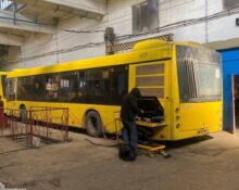 Одне з тролейбусних депо Дніпра. Працює цілодобово. «Вночі слюсарі та майстри виконують заявки з технічних журналів тролейбусів, на яких водіями