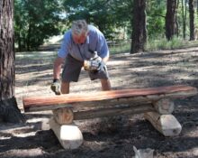 У Сосновому сквері співробітники комунального підприємства «Парк культури та відпочинку Придніпровський» власноруч виготовляють лави із сухих, аварійних дерев, які видалили