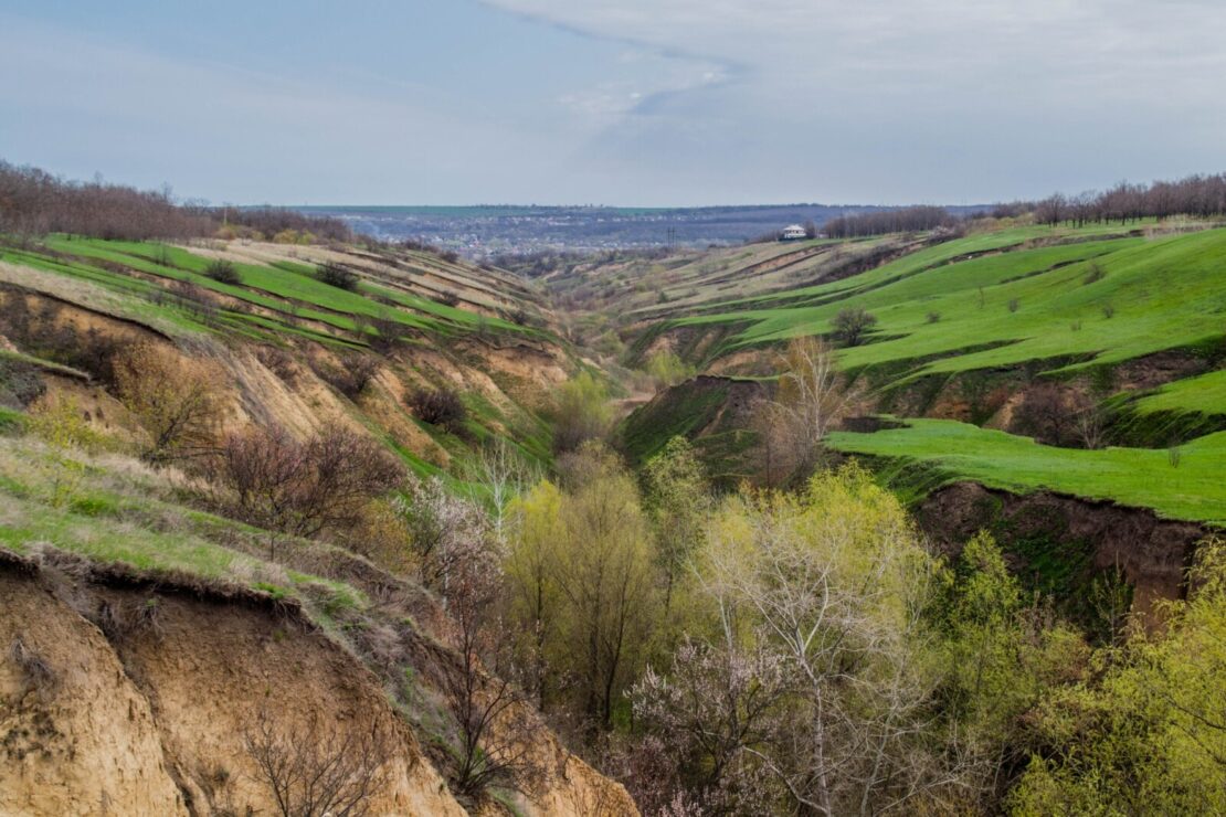 У квітні унікальна природна пам’ятка неподалік Дніпра — Сажівська балка — перетворюється на мальовничий краєвид, який нагадує ірландські та новозеландські горизонти. Це місце знаходиться між селищем Старі Кодаки та Лоцманською Кам’янкою в Дніпровському районі та має довжину близько 2 км з висотою схилів до 40 метрів.
