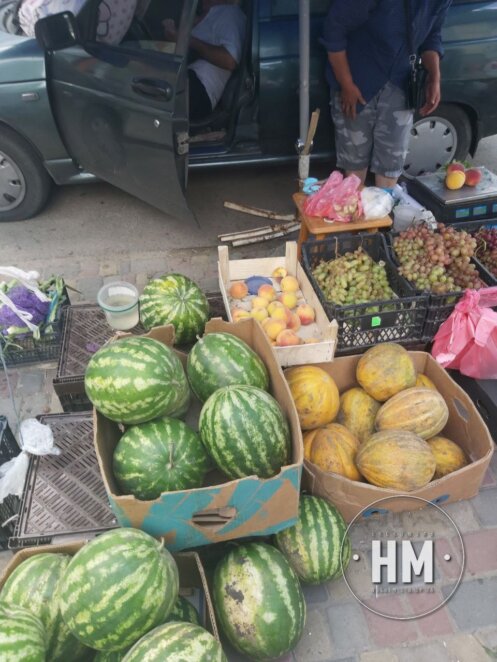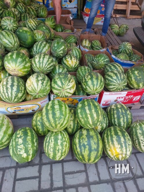 Попри те, що ринок стихійний, ми не побачили ніде неакуратних розвалів кавунів, що валяються на асфальті чи землі. Всі кавуни були або в коробках, або в ящиках.