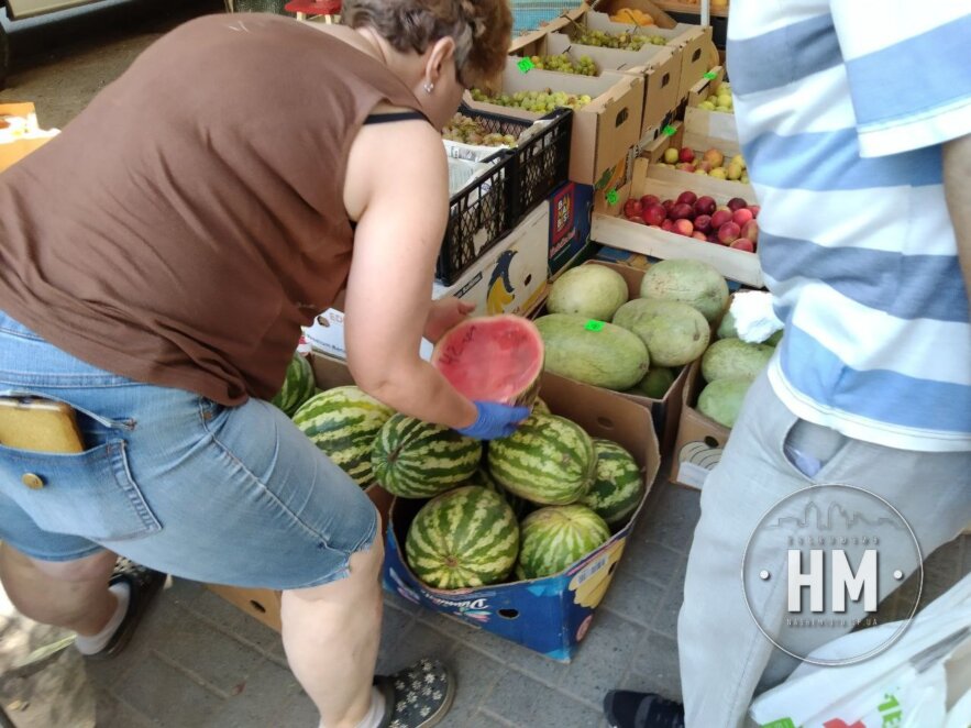 — На цьому ринку кавун беремо в одному місці, — ділиться дніпрянка Любов. — Нам подобається кавуни солодкі, свіжі. Документи зазвичай не питаємо, довіряємо. У цій точці купуємо не лише кавуни, а й помідори, огірки, претензій до овочів та фруктів ніколи не було.
