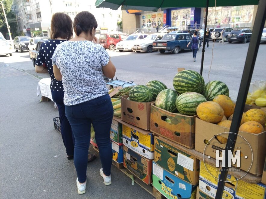 Журналісти також завітали до невеличкого стихійного ринку, що розташований біля ТК «Нагорка». Тут ми знайшли всього дві точки, де можна було придбати кавуни. Обрали ту, де товар був більш схожий на домашній.