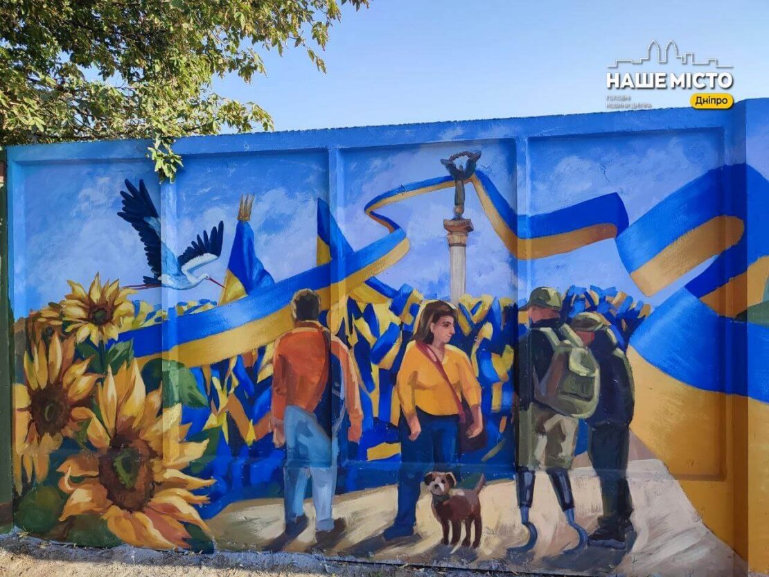 У місті Дніпро, на паркані біля Алеї пам’яті на площі Єдності, з’являється новий патріотичний мурал. Ця масштабна художня робота стала символом незламності та пам’яті громади.