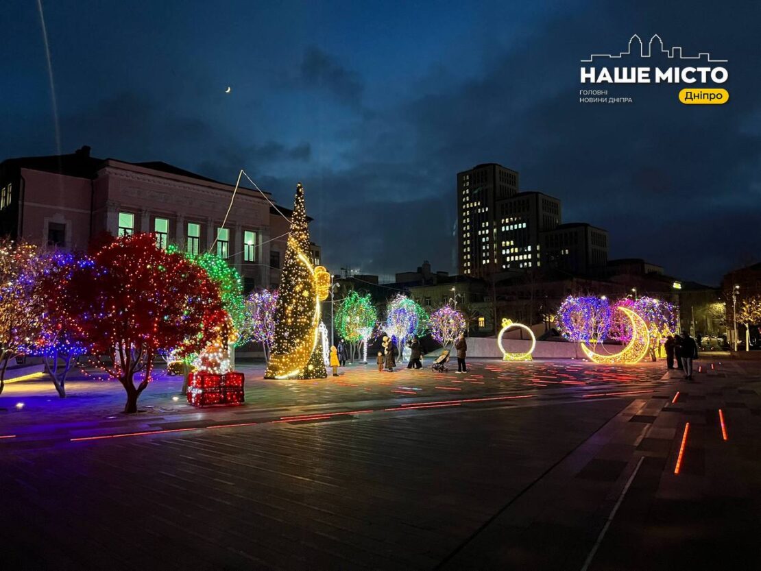 У Дніпрі Успенська площа перетворилась на казкове місце з приходом новорічних свят. Центральним елементом святкування стала величезна новорічна ялинка, що вабить містян яскравими вогнями та святковою атмосферою.