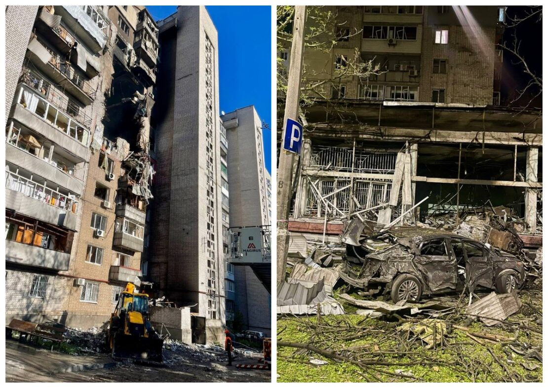 23 квітня внаслідок ворожої атаки на місто Дніпро було пошкоджено чотири локації, а найбільше постраждала житлова багатоповерхівка в центрі міста. Міський голова Борис Філатов повідомив, що у одному з під’їздів повністю зруйновані квартири з 6-го по 9-й поверх.