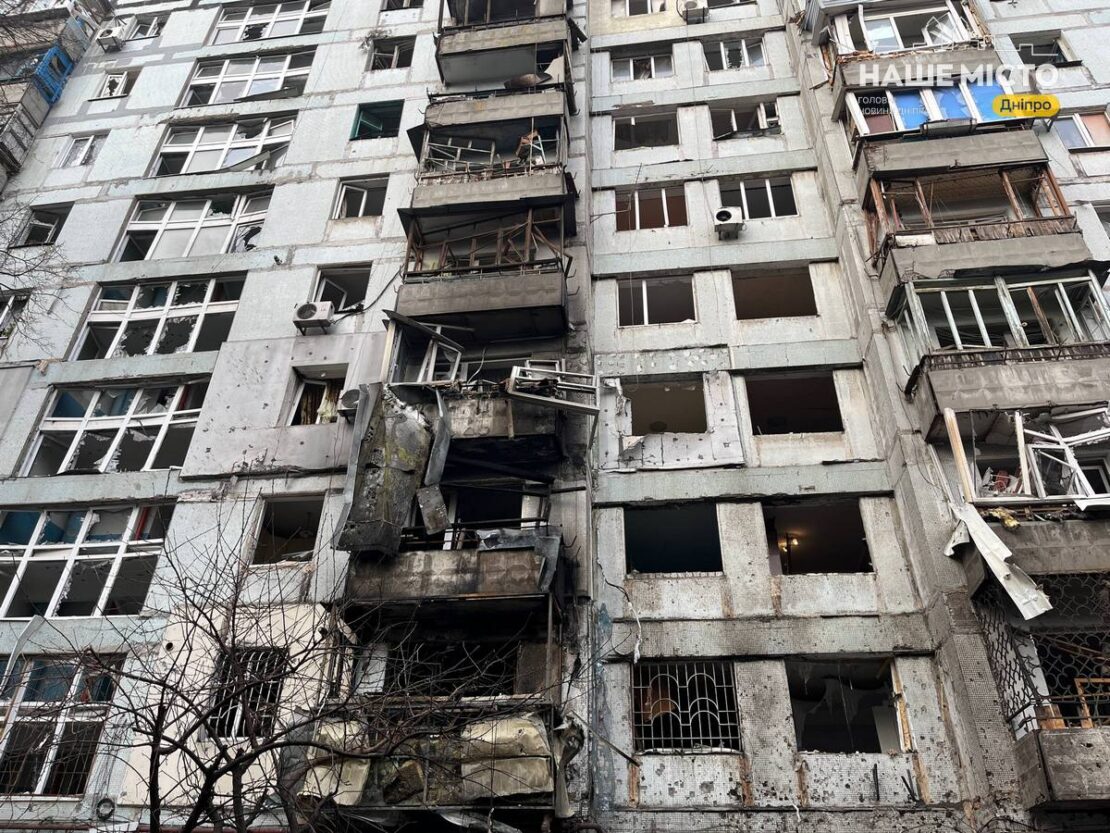 У Дніпрі серія нічних обстрілів призвела до серйозних пошкоджень п’яти житлових будинків. Загалом, в результаті атак було вибито приблизно двісті вікон, а в одному з дев’ятиповерхових будинків пошкоджено також покрівлю.