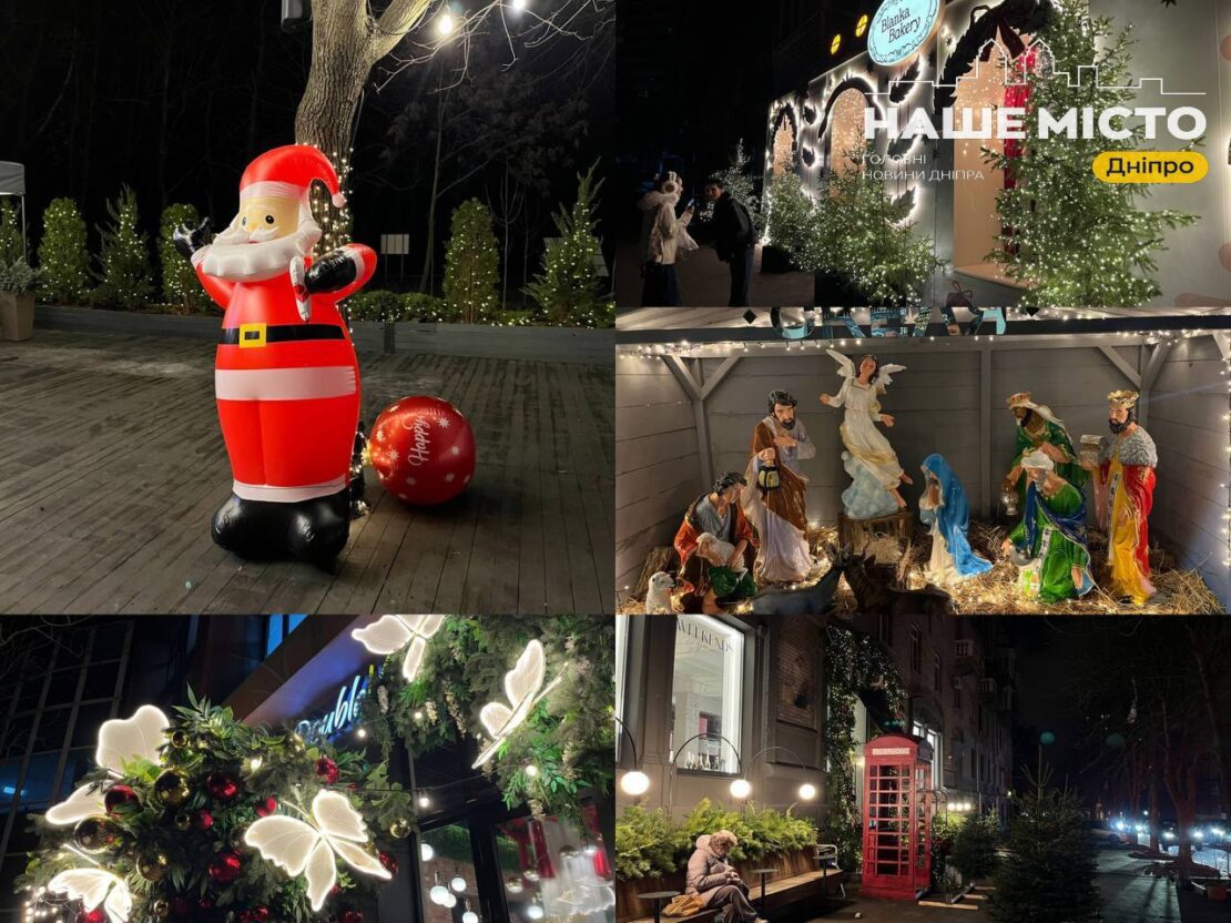 Цьогоріч у центрі Дніпра запалали святкові вогні, прикрашаючи місто до новорічних свят. Особливо прикрашеною є вулиця Володимира Вернадського, де різноманітні магазини та заклади влаштували яскраві фотозони, створюючи чудовий настрій для містян та гостей. Однією з найпопулярніших локацій став ресторан «Скеля» за адресою Володимира Вернадського, 37б, де встановлено різдвяний вертеп. Вертеп включає у собі фігури Ісуса, Марії та Йосифа, яскраво підсвічені гірляндами, створюючи унікальну атмосферу для святкових фотографій.