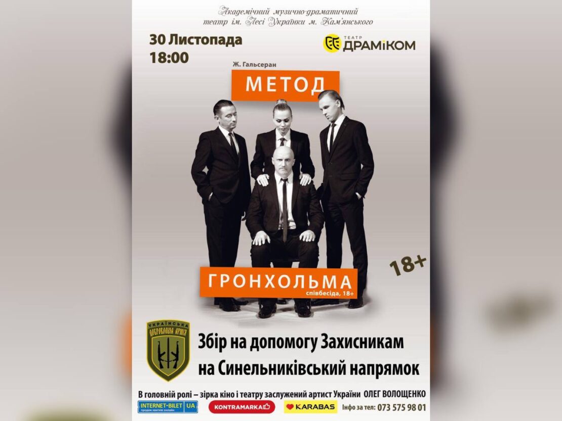 30 листопада о 18:00 у Дніпровському академічному театрі драми і комедії відбудеться перегляд популярної вистави «Метод Гронхольма». Ця комедія, написана відомим іспанським драматургом Жорді Гальсераном, вперше поставлена у 2003 році і стала міжнародним хітом. Спектакль перекладено декількома мовами та навіть екранізовано у Іспанії. Сюжет п’єси нагадує захоплюючий детектив, де глядачі стають свідками боротьби чотирьох кандидатів за вакантну посаду. Вистава обіцяє бути гострою та непередбачуваною, не залишить байдужим жодного з глядачів.