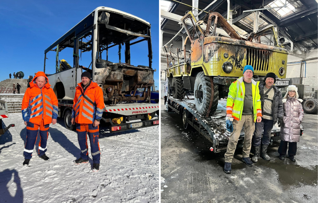 Пошкоджені кузови, розбите скло та сліди уламків показують масштаби руйнувань у місті, а також витримку його мешканців. Техніку доставили за допомогою маніпуляторів та евакуаторів, у чому допомогли департамент транспорту Дніпровської міськради та приватні підприємці.