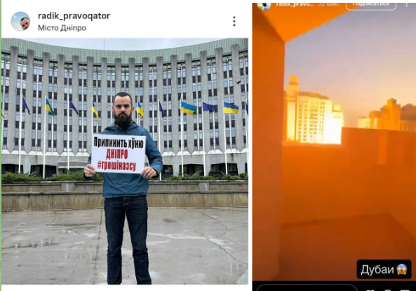 Нещодавно Родіон засвітився з відео, знятим просто з балкону у Дубаї, показавши наслідки ударів по ОАЕ. Отже, Родіон – молодий чоловік призовного віку, який має відстрочку нібито через те, що є студентом в “університеті Поплавського”, замість навчання та захисту країни можливо проводив час в ОАЕ, та й взагалі в Україну не поспішає. Принаймні соцмережі Боровенського не дають змогу встановити, що він зараз перебуває у Дніпрі та Україні загалом.