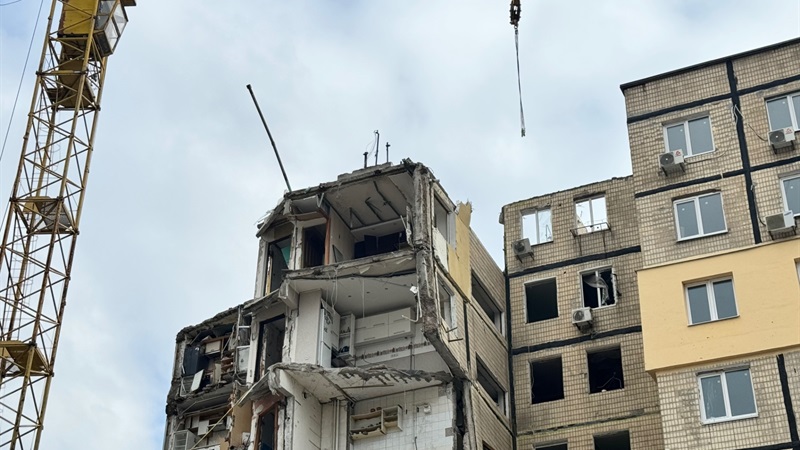 «Ми вже демонтували ліфтову та технічний поверх. Сьогодні бригади працюють над тим, аби демонтувати 9-й поверх. До кінця дня маємо його завершити. Морально складно тут працювати, бачачи речі людей… Але, крім цього виклику, маємо ще один — це те, що у сусідніх під’їздах продовжуватимуть жити люди. Тож нам треба робити все так, аби жодна квартира не постраждала. Робота важка. А ще дощовита погода трошки уповільнює процес. Але ми йдемо за графіком», — розповів головний інженер підрядної компанії Олександр Романцов.