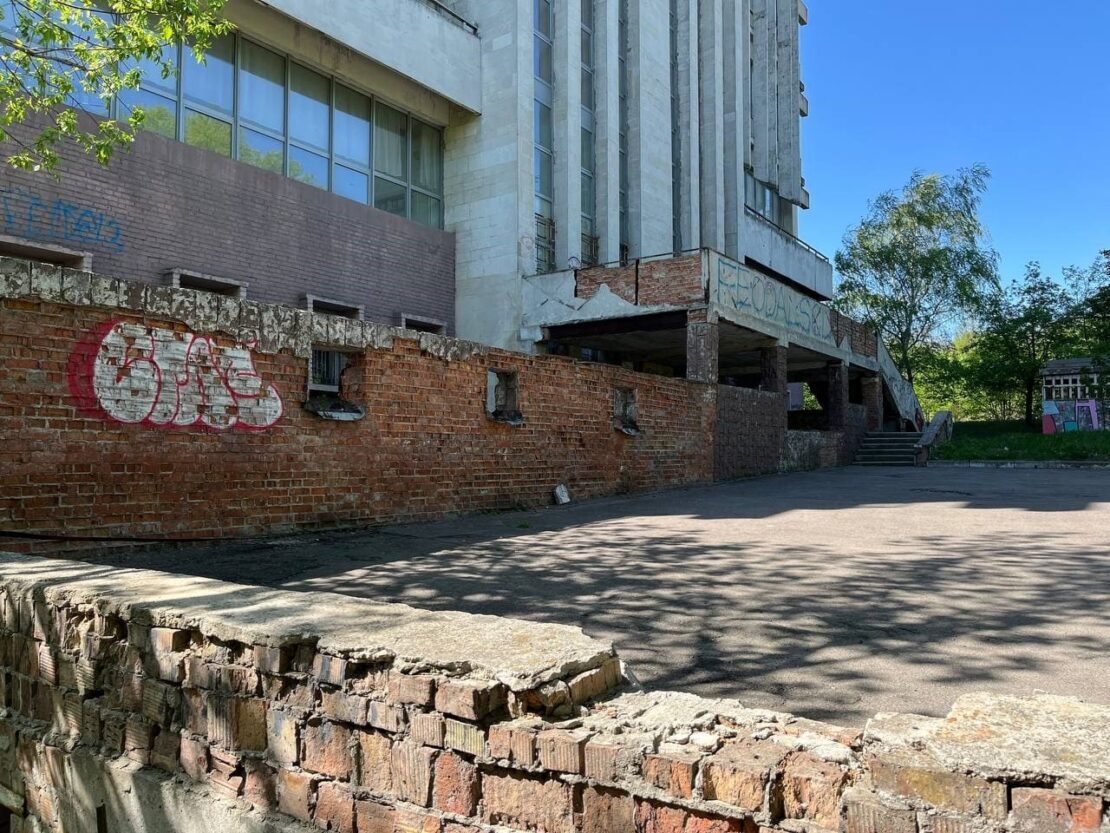 Гуртожиток №2 виглядає як декорація до фільму про занепад — подряпаний фасад, навколо бур’яни, а спортивний майданчик існує лише формально. Кілька поодиноких турніків – це все, що залишилось від колишньої спортивної інфраструктури.