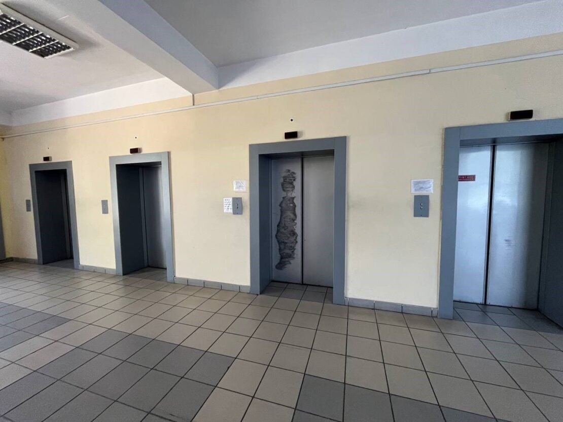 Головний корпус теж виглядає сумно. З восьми ліфтів працює лише один — ніби нагадування, що колись тут усе функціонувало, а тепер усе поступово розвалюється.