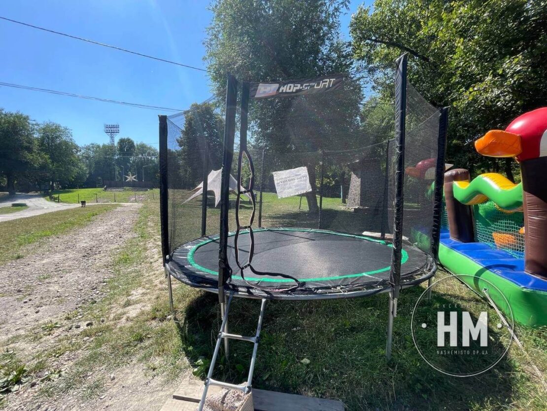 На території парку три працюючи батути, які перебувають у нормальному стані. Жодних потертостей або тим паче дірок не було.