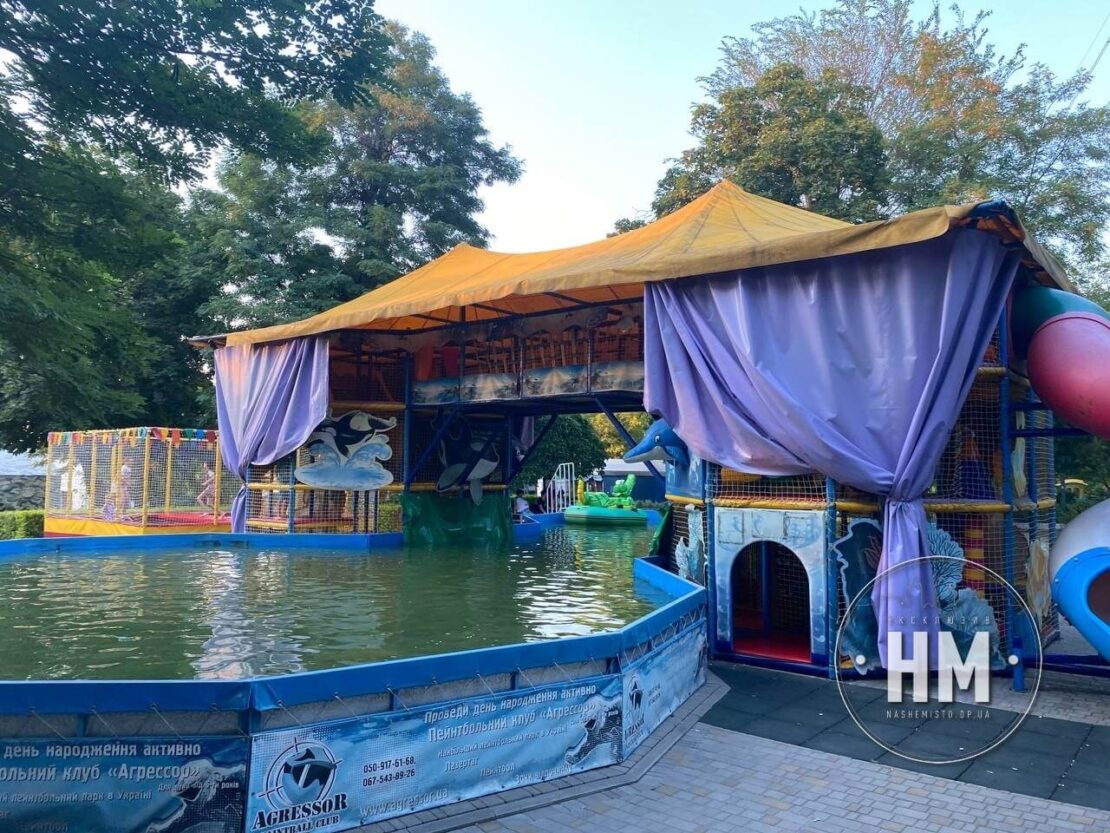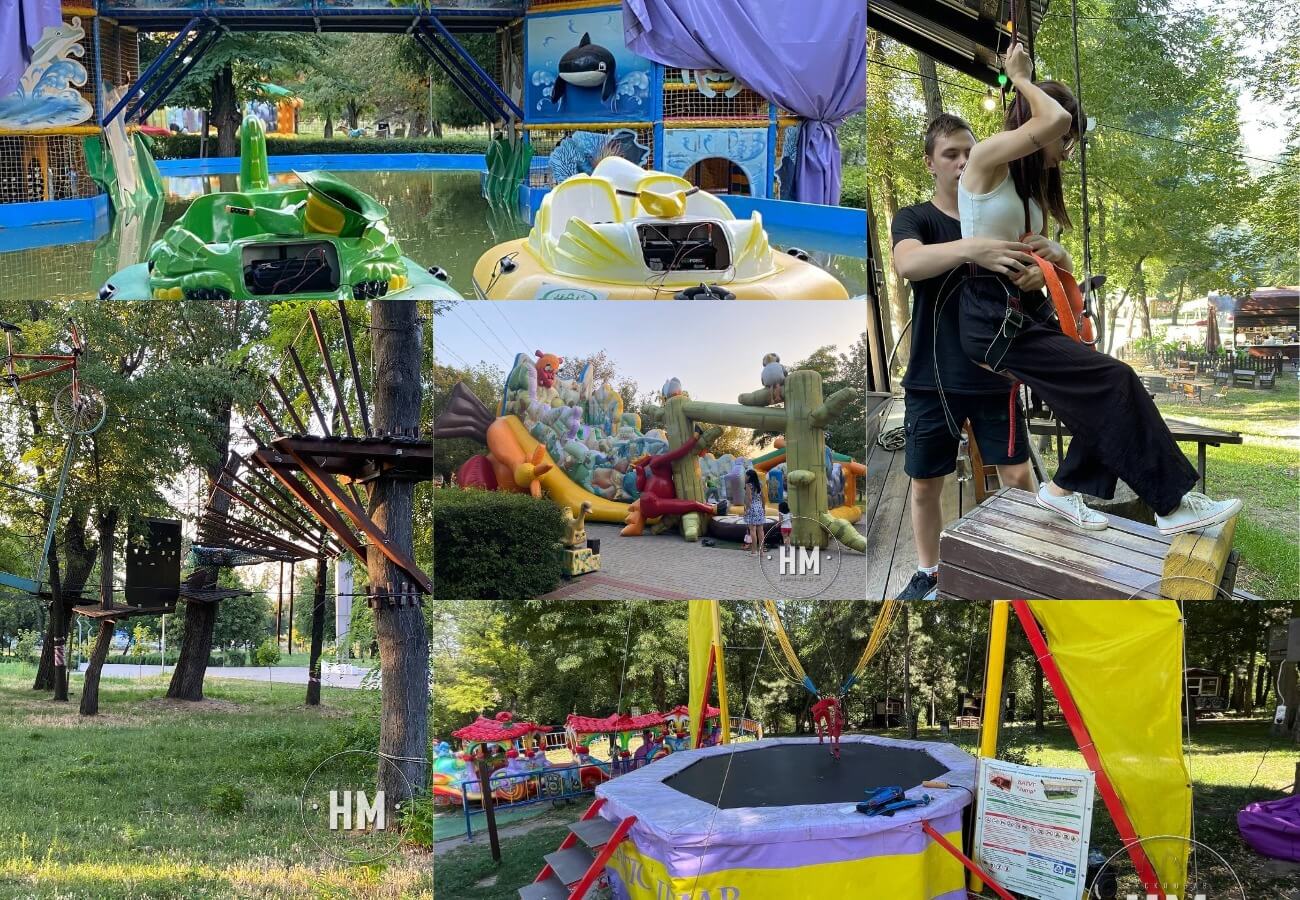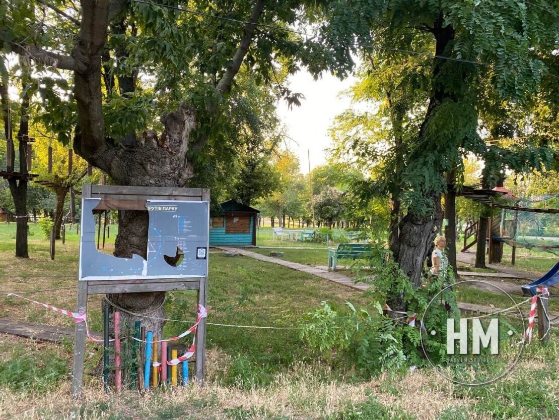 В парку є також непрацюючі атракціони, які просто перекриті ізолентою. Так, наприклад, ще кілька років тому тут функціонував мотузковий парк, зараз, на жаль, тут покататися не вийде. На території висять відповідні таблички із зазначенням того, що знаходиться поряд небезпечно. Проте прямо територією колишнього атракціону спокійно ходять люди з дітьми, тому що тут немає жодних огорож. Зазначимо, що конструкція вся переламана, десь стирчать дерев’яні сходи, а десь зіпсований канат і взагалі звисає прямо над головою. Погодні умови також відіграють свою роль у руйнуванні доріжки, тому варто звернути на це увагу та не пускати своїх дітей близько до цієї споруди.