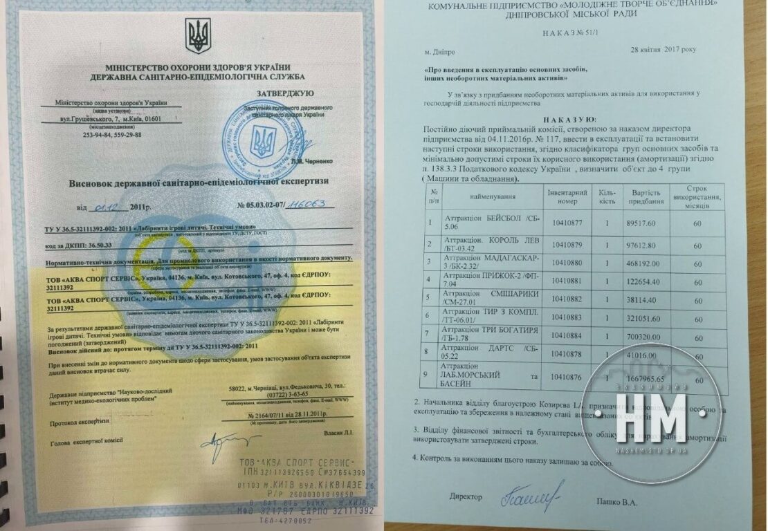 Ми поцікавилися у адміністраторів атракціонів, чи є в наявності дозвільні документи та сертифікати. Вони, у свою чергу, повідомили, що вся документація знаходиться у адміністрації парку. Там нам повідомили про те, що на даний момент людина, яка відповідає за дані документи, відсутня і попросили нас приїхати в інший день.