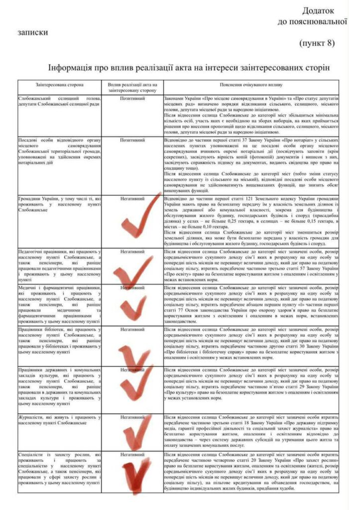 У виграші будуть лише чиновники, а мешканці Слобожанського програють від зміни статусу населеного пункту на “місто”: висновки експертних управлінь Верховної Ради