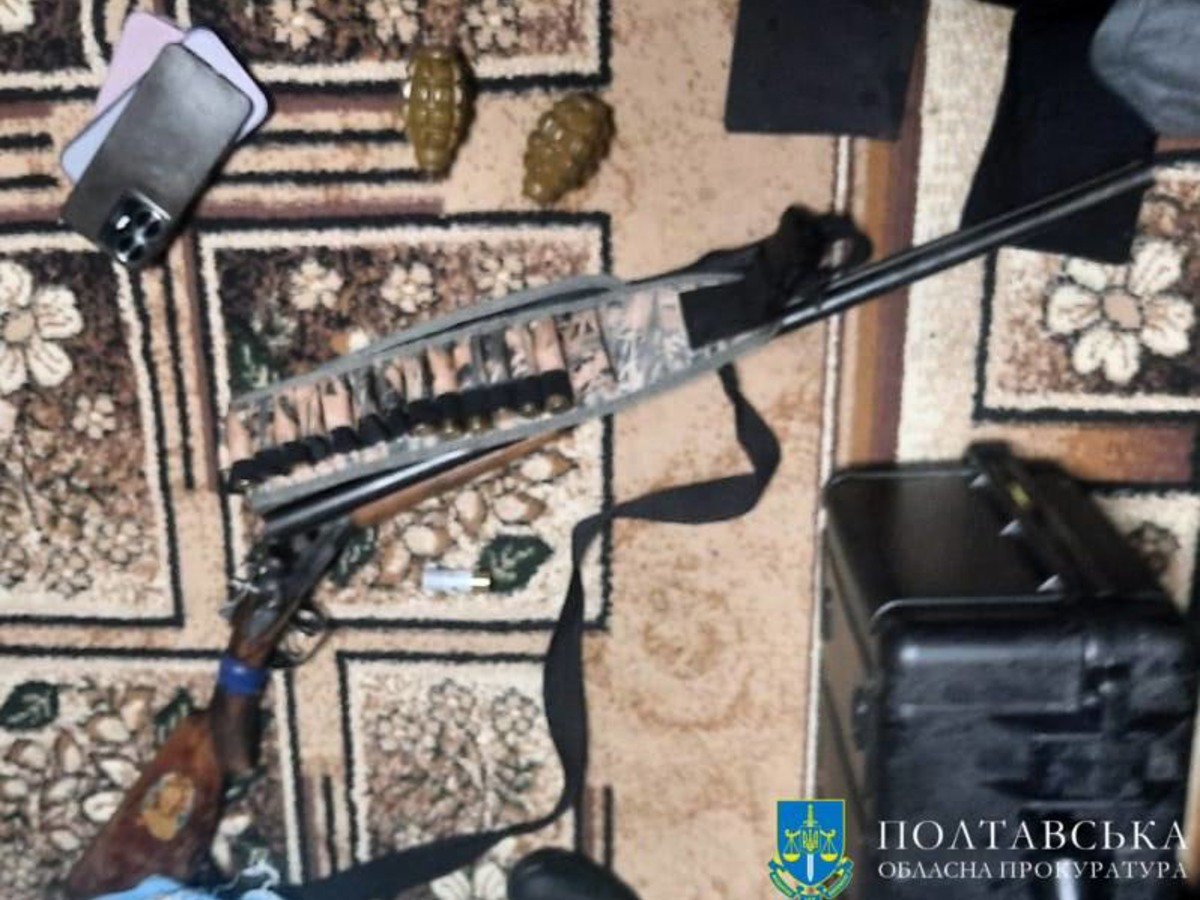 Через кілька годин підозрюваних затримали. Під час обшуку правоохоронці вилучили у мешканця Лубен 2 корпуси ручних гранат, мисливську рушницю, патрони, балаклаву, мобільні телефони тощо. Речові докази направлені на експертизи. Автомат військового знайшли в лісопосадці, де його кинули підозрювані”, – повідомляє Полтавська обласна прокуратура.