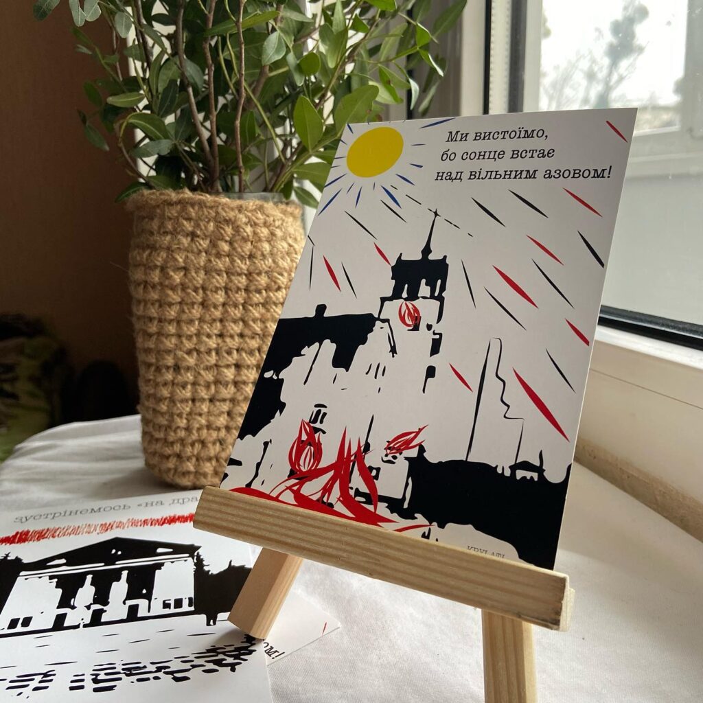 Я тоді не працювала, тож донатами допомогти не могла. Чомусь вирішила просто намалювати картинку – рефлексію про свій виїзд з Маріуполя. На листівці був зображений будинок, що палає. Для мене це було змогою виговоритися й показати людям, що було в Маріуполі. Щоб побачили – ми все-таки вистоїмо.