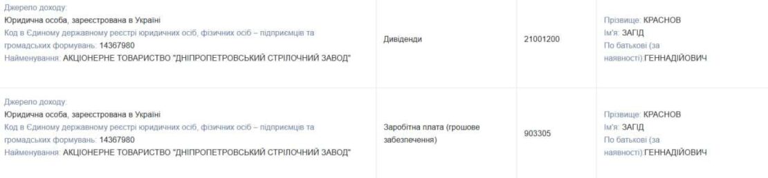 Скільки заробив Краснов у 2025 році