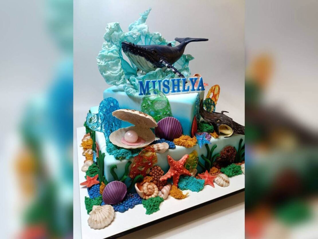 При створенні торта кондитер використав тему морської глибини, додавши у дизайн елементи, які відтворюють підводний світ.