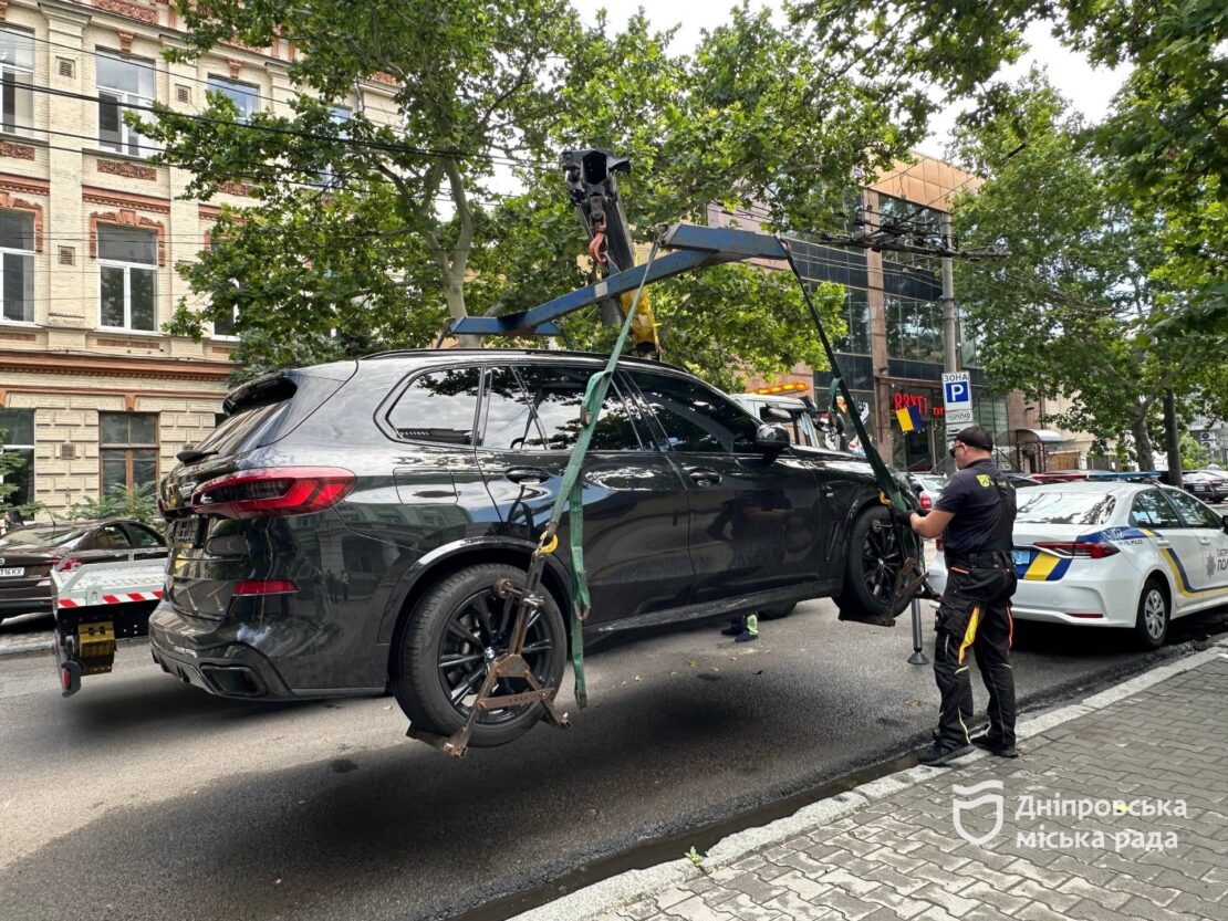 «17 липня ми вийшли на вулицю Володимира Мономаха, щоб виявити правопорушення, зокрема транспортні засоби без номерних знаків. Один із таких автомобілів BMW залишено на паркомісці, інший — припарковано з порушенням правил дорожнього руху (ближче ніж за 10 метрів до виїзду з території). Обидва без номерів. Скоріше за все, номери зняли навмисно, щоб уникнути штрафів. У таких випадках ми переміщуємо авто на спеціальний майданчик на вулиці Курсантській», — пояснив заступник директора департаменту транспортної інфраструктури Дніпровської міської ради Ігор Швецов.